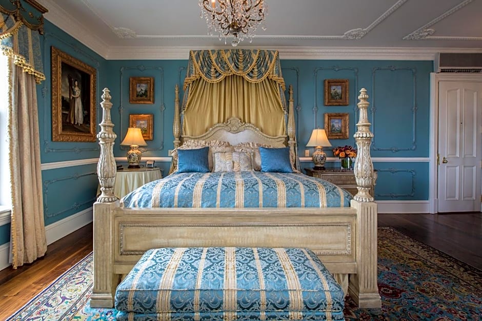 Federal is located on the 2nd floor and accessible via 1 flight of stairs. This room's décor is inspired from the French Empire under Napoleon. It offers a full-canopy bed, Federal-style tiled fireplace, and an oversize marble bath. A fireplace and 2 separate jetted tubs are provided. A flat-screen cable TV is included. Please note, Chanler does not have an elevator.